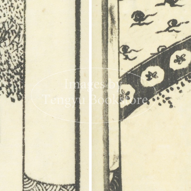 本来は2枚に分けて描かれた作品であるため、色味や図案の整合に若干の不統一があることをご了承ください。