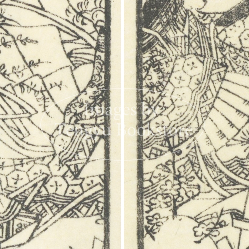 本来は2枚に分けて描かれた作品であるため、色味や図案の整合に若干の不統一があることをご了承ください。