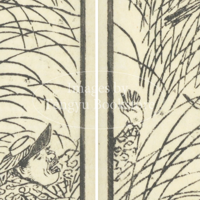 本来は2枚に分けて描かれた作品であるため、色味や図案の整合に若干の不統一があることをご了承ください。