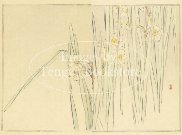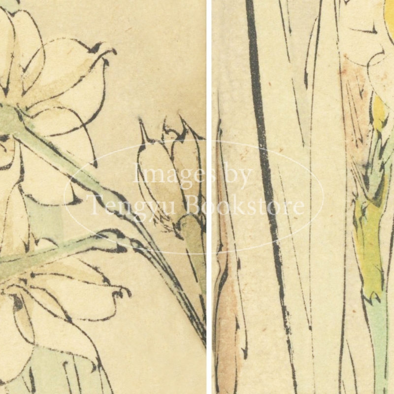 明治から大正にかけての日本画家 渡辺省亭 (1852-1918)による絵手本「省亭花鳥画譜」からの一枚。ヨーロッパへの輸出用工芸品の図案なども手掛けた渡辺省亭は、洋風表現を取り入れた独自の花鳥画で海外でも高い人気を博し、印象派にも影響を与えた日本画家です。
