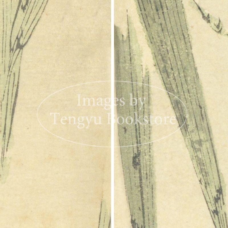 本来は2枚に分けて描かれた作品であるため、色味や図案の整合に若干の不統一があることをご了承ください。