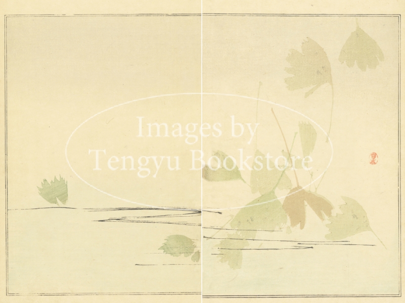 本来は2枚に分けて描かれた作品であるため、色味や図案の整合に若干の不統一があることをご了承ください。