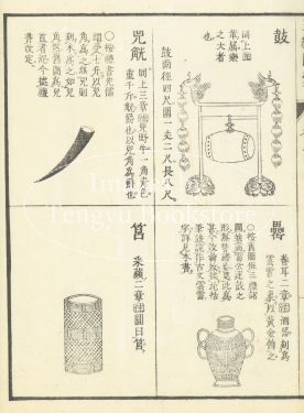 儒学において重視される文献の五経「詩経」「書経」「礼記」「易経」「春秋」を図解した明代中国の書籍「六経図」を元にした和刻本。江戸中期の絵師 青木夙夜(生年不詳-1802)が挿絵を手がけています。