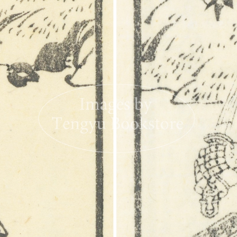 本来は2枚に分けて描かれた作品であるため、色味や図案の整合に若干の不統一があることをご了承ください。