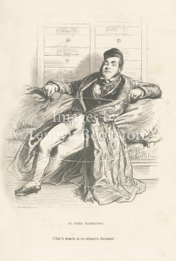 19世紀フランスの挿絵画家J.J.グランヴィル(1803-1847)が挿絵を手掛けた小説「ジェローム・パチュロ 社会的地位を求めて」の挿絵。下着屋の息子ジェローム・パチュロがひたすらに立身出世を目指して 文学界やジャーナリズムなど様々な世界に首を突っ込んでは失敗を続ける様子を通して19世紀フランスの社会を戯画的に描いた、当時ベストセラーとなった風刺小説です。