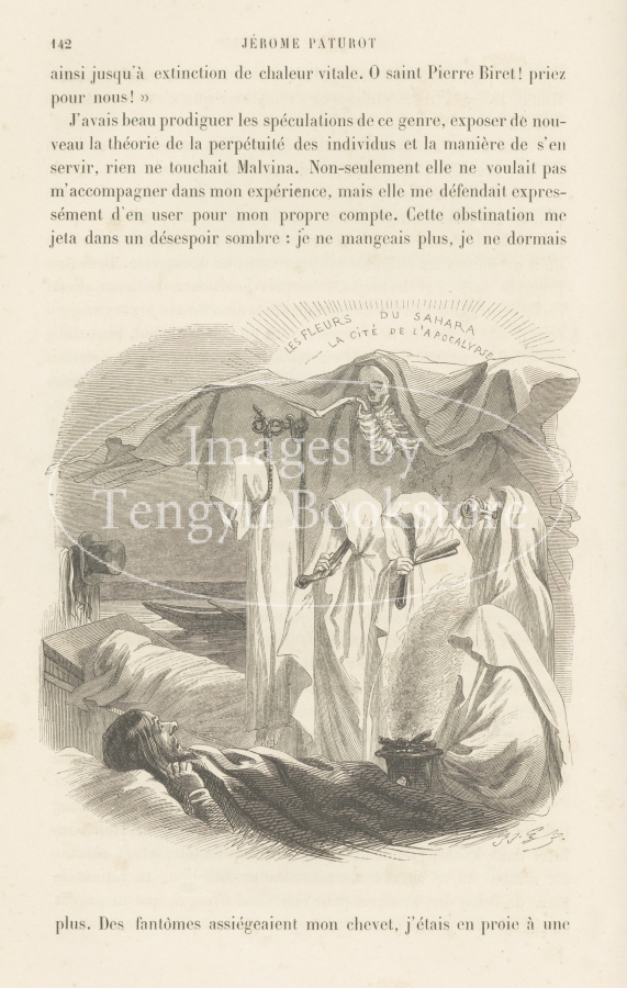 19世紀フランスの挿絵画家J.J.グランヴィル(1803-1847)が挿絵を手掛けた小説「ジェローム・パチュロ 社会的地位を求めて」の挿絵。下着屋の息子ジェローム・パチュロがひたすらに立身出世を目指して 文学界やジャーナリズムなど様々な世界に首を突っ込んでは失敗を続ける様子を通して19世紀フランスの社会を戯画的に描いた、当時ベストセラーとなった風刺小説です。