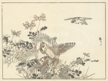 江戸時代末期から明治時代初期にかけて活躍した日本画家 幸野楳嶺(こうの ばいれい : 1844-1895)による、花鳥画・虫類を描いた絵手本集中の1ページ。