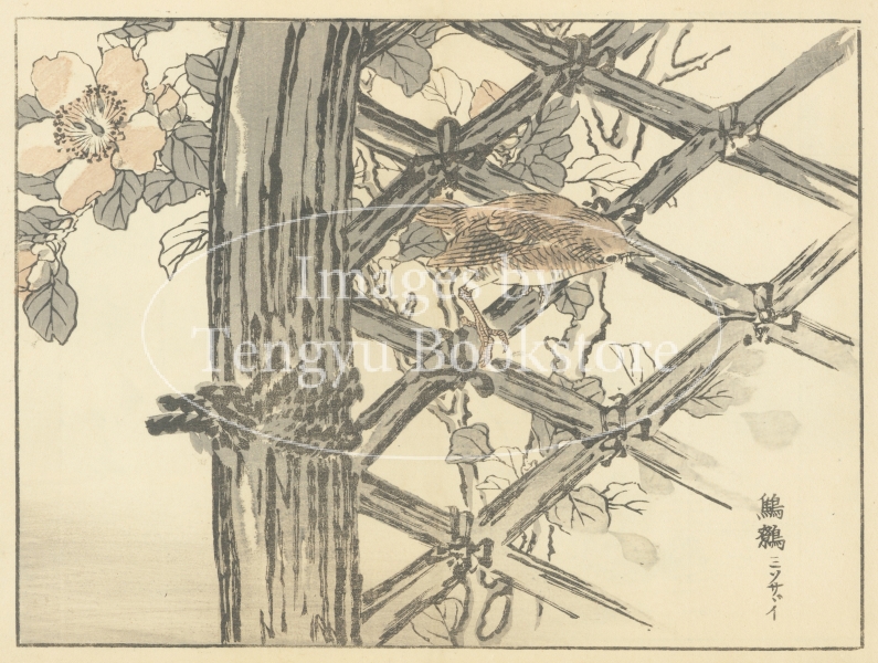 江戸時代末期から明治時代初期にかけて活躍した日本画家 幸野楳嶺(こうの ばいれい : 1844-1895)による、花鳥画・虫類を描いた絵手本集中の1ページ。