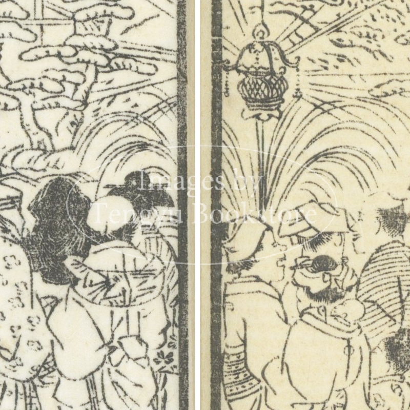 本来は2枚に分けて描かれた作品であるため、色味や図案の整合に若干の不統一があることをご了承ください。