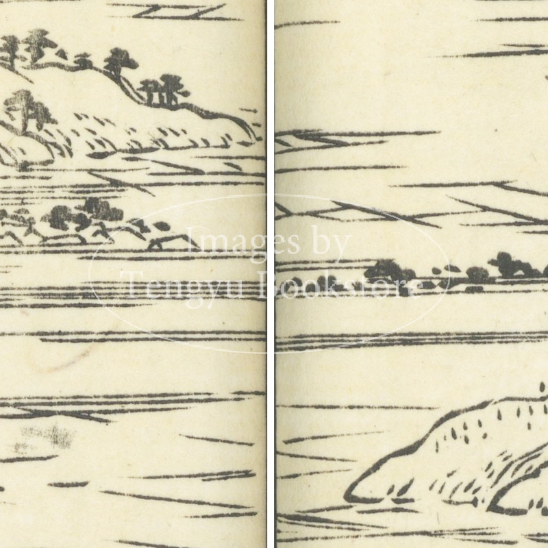 本来は2枚に分けて描かれた作品であるため、色味や図案の整合に若干の不統一があることをご了承ください。