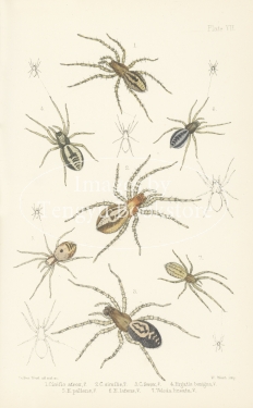 19世紀イギリスの昆虫学者E.F.ステーブリーによるイギリス蜘蛛図鑑中の一図。イギリス、アイルランドに生息する蜘蛛を石版図版をもちいて紹介したもの。