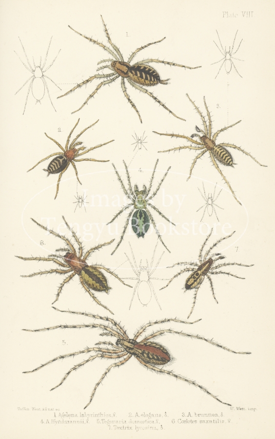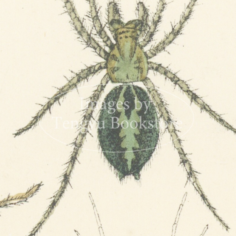 19世紀イギリスの昆虫学者E.F.ステーブリーによるイギリス蜘蛛図鑑中の一図。イギリス、アイルランドに生息する蜘蛛を石版図版をもちいて紹介したもの。