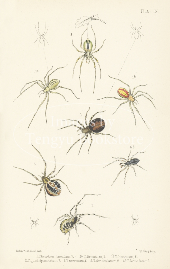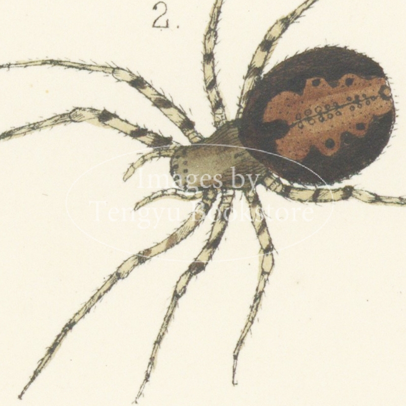 19世紀イギリスの昆虫学者E.F.ステーブリーによるイギリス蜘蛛図鑑中の一図。イギリス、アイルランドに生息する蜘蛛を石版図版をもちいて紹介したもの。