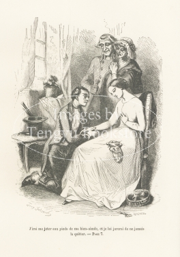 19世紀フランスの挿絵画家トニー・ジョアノ(1803-1852)の挿絵本「お好みの地への旅」中の1図。作家アルフレッド・ド・ミュッセによる物語に、当時人気の高かったトニー・ジョアノが多数のイラストを付けた本書は、グロテスクな怪物たちが跋扈する幻想旅行譚です。