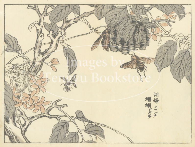 江戸時代末期から明治時代初期にかけて活躍した日本画家 幸野楳嶺(こうの ばいれい : 1844-1895)による、花鳥画・虫類を描いた絵手本集中の1ページ。