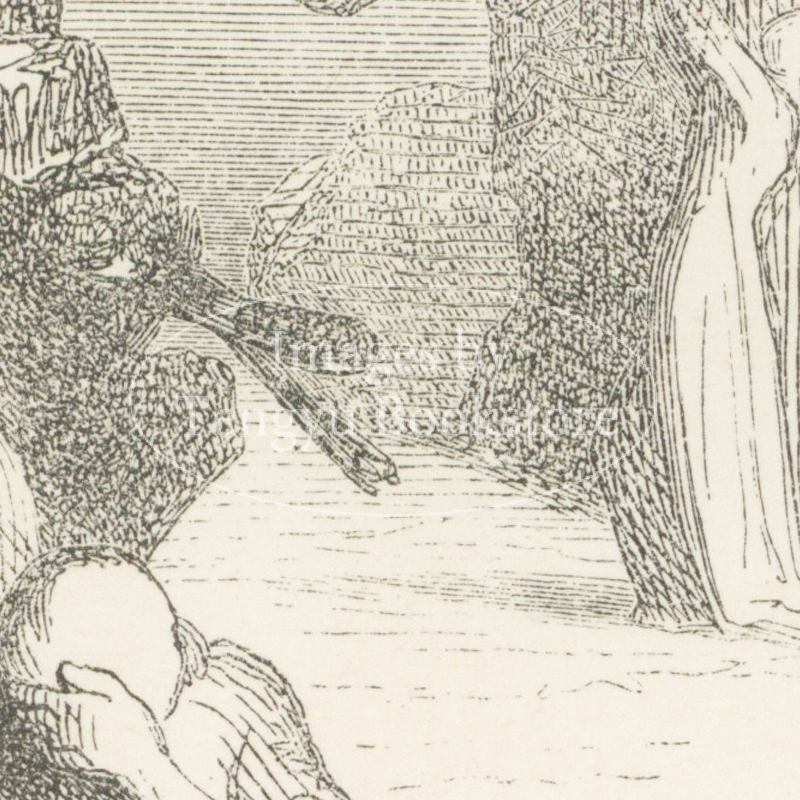 19世紀フランスの挿絵画家トニー・ジョアノ(1803-1852)の挿絵本「お好みの地への旅」中の1図。作家アルフレッド・ド・ミュッセによる物語に、当時人気の高かったトニー・ジョアノが多数のイラストを付けた本書は、グロテスクな怪物たちが跋扈する幻想旅行譚です。