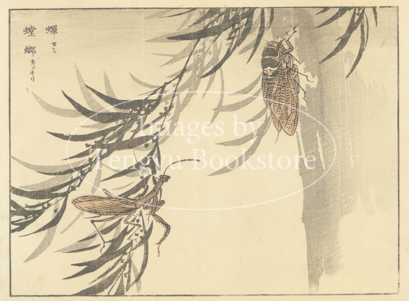 江戸時代末期から明治時代初期にかけて活躍した日本画家 幸野楳嶺(こうの ばいれい : 1844-1895)による、花鳥画・虫類を描いた絵手本集中の1ページ。