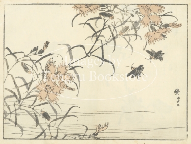 江戸時代末期から明治時代初期にかけて活躍した日本画家 幸野楳嶺(こうの ばいれい : 1844-1895)による、花鳥画・虫類を描いた絵手本集中の1ページ。