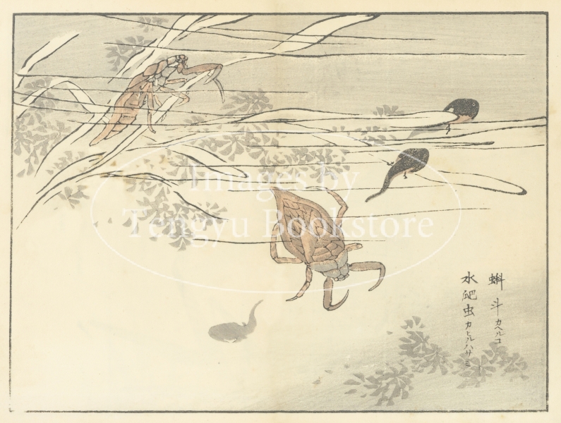 江戸時代末期から明治時代初期にかけて活躍した日本画家 幸野楳嶺(こうの ばいれい : 1844-1895)による、花鳥画・虫類を描いた絵手本集中の1ページ。