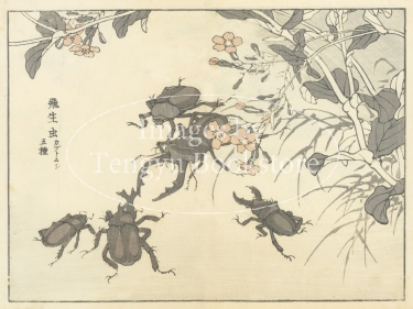 江戸時代末期から明治時代初期にかけて活躍した日本画家 幸野楳嶺(こうの ばいれい : 1844-1895)による、花鳥画・虫類を描いた絵手本集中の1ページ。