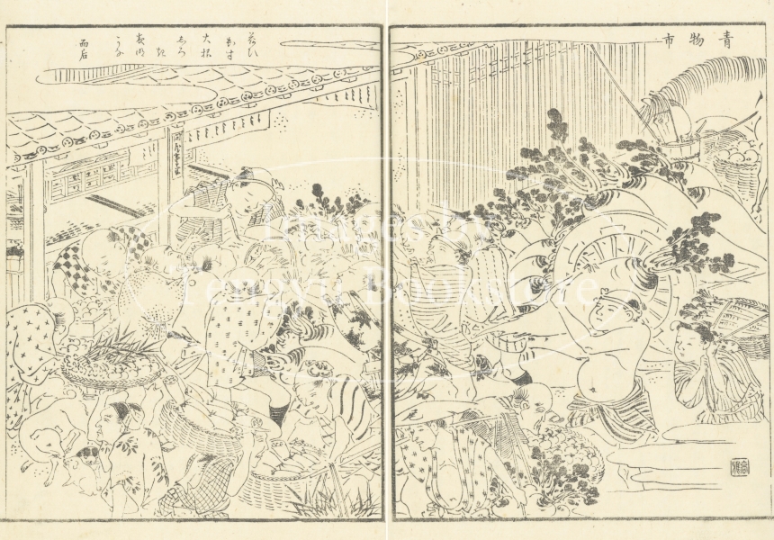 ※本作は見開きページの挿絵を1つの画像にまとめたものです。 本来は2枚に分けて描かれた作品であるため、色味や図案の整合に若干の不統一があることをご了承ください。