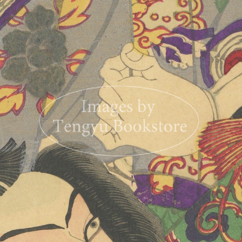 江戸時代後期-明治にかけて活躍した浮世絵師 豊原国周(1835-1900)による三枚続の役者絵。