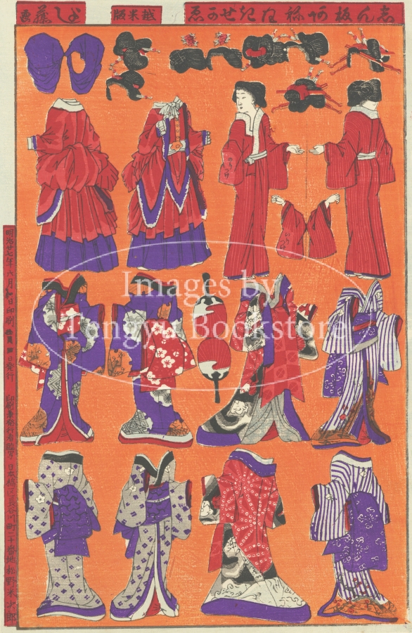 江戸・明治の浮世絵師 歌川芳藤(1828-1887)によるおもちゃ絵「志んあねさまきせかえ」。