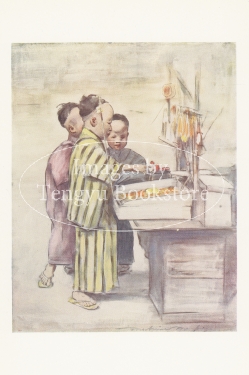 19-20世紀イギリスで活動したオーストラリア人画家モーティマー・メンペス(1855-1938)の日本旅行記「日本」の挿絵。本書は1887年と1896年に日本を訪れ、河鍋暁斎とも親交を持ったメンペスが描いた明治期日本の絵画を多数収録したもの。