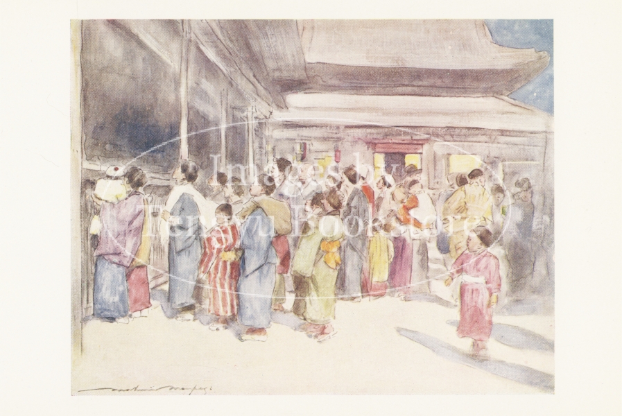 19-20世紀イギリスで活動したオーストラリア人画家モーティマー・メンペス(1855-1938)の日本旅行記「日本」の挿絵。本書は1887年と1896年に日本を訪れ、河鍋暁斎とも親交を持ったメンペスが描いた明治期日本の絵画を多数収録したもの。