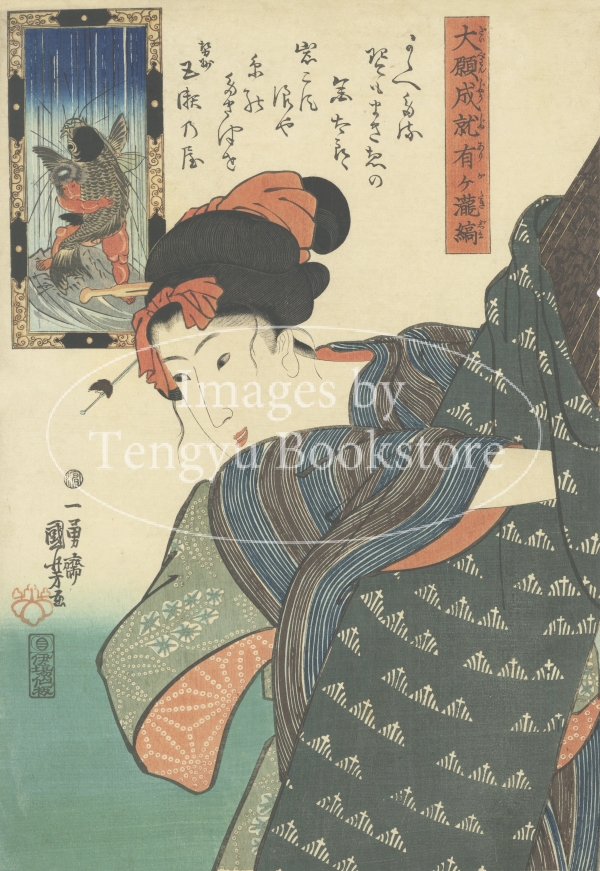 江戸時代後期に高い人気を誇った名浮世絵師 歌川国芳(1798-1862) による連作浮世絵「大願成就有ケ瀧縞」のうちの一枚。