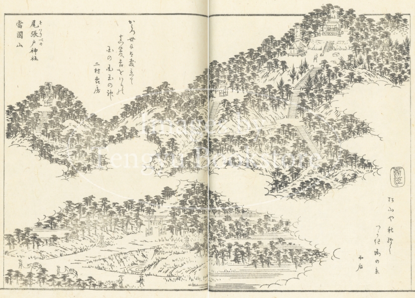 幕末から明治にかけて刊行された尾張国を紹介する地誌「尾張名所図会」より。尾張国とは、現在の愛知県に相当する地域のこと。江戸後期の絵師 森玉僊(森高雅 1792-1864)や、江戸から明治にかけての絵師 小田切春江(1810-1888)などが挿絵を手がけています。