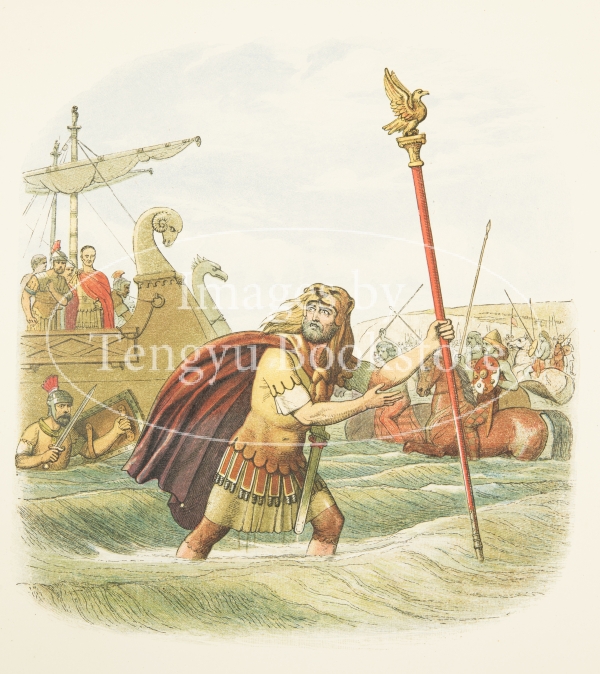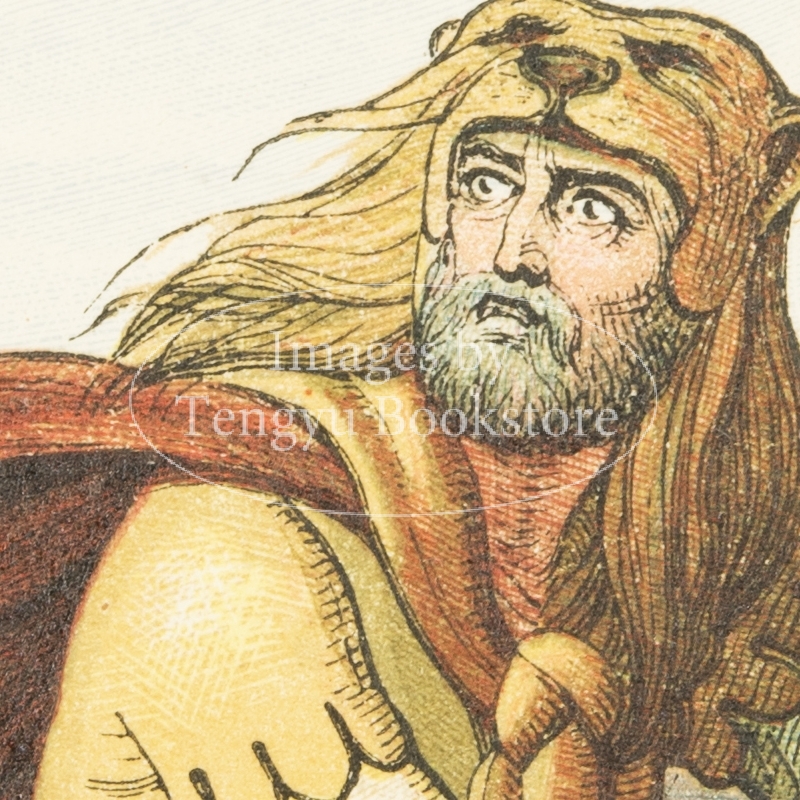 紀元前から15世紀までのイギリスの歴史を挿絵入りで語った19世紀中期刊行の歴史書「英国年代記」初版の挿絵。同時代の作家コナン・ドイルの叔父であり、同じく挿絵画家のリチャード・ドイルの兄でもあった画家ジェームズ・E・ドイル(1822-1892)が挿絵と本文を手掛けた本書は、色鮮やかで精密な多色刷木版印刷によるカラー挿絵を多用した美書。