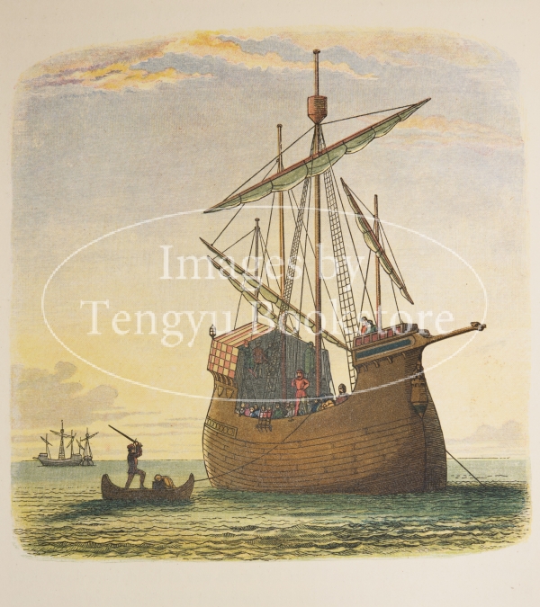 紀元前から15世紀までのイギリスの歴史を挿絵入りで語った19世紀中期刊行の歴史書「英国年代記」初版の挿絵。同時代の作家コナン・ドイルの叔父であり、同じく挿絵画家のリチャード・ドイルの兄でもあった画家ジェームズ・E・ドイル(1822-1892)が挿絵と本文を手掛けた本書は、色鮮やかで精密な多色刷木版印刷によるカラー挿絵を多用した美書。