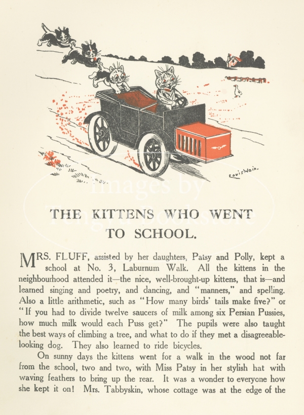 19世紀末~20世紀初期イギリスのイラストレーター、ルイス・ウェイン(1860-1936)の作品集中の1ページ。本書は、猫の画家として当時一世を風靡したルイス・ウェインによる短い児童向け絵物語を多数収録したもの。
