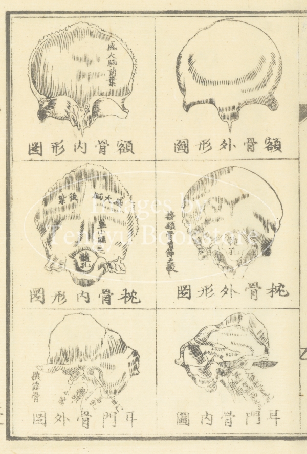 19世紀中期に中国で刊行された医学書「全体新論」の日本翻刻版「全体新論」の挿絵。。イギリス人宣教師・医師のベンジャミン・ホブソン(1816-1873)が著した本書は、中国に初めて西洋の解剖学を紹介したもの。ホブソンは清代中国で働きながら漢文で医学書を著し、本書において初めて西洋医学を中国に伝えたとされています。彼の著作は日本の医学にも大きな影響を与えました。