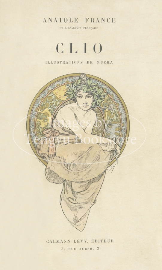 19世紀末~20世紀初頭にかけて活躍した、アールヌーヴォー美術を代表する芸術家アルフォンス・ミュシャ(1860-1939)が、19世紀末フランスの作家アナトール・フランス(1844-1924)の短編小説集「クリオ」のために描いた扉絵。