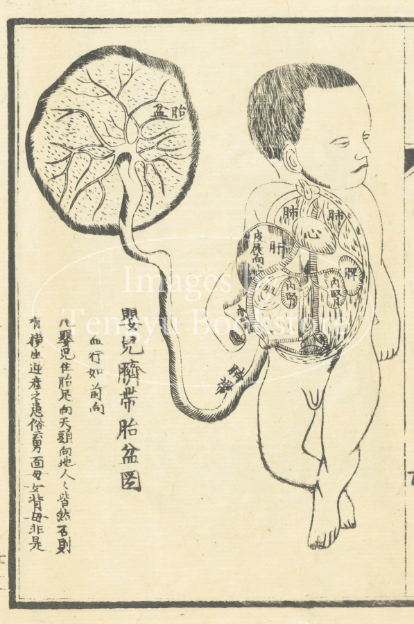 19世紀中期に中国で刊行された医学書「全体新論」の日本翻刻版「全体新論」の挿絵。。イギリス人宣教師・医師のベンジャミン・ホブソン(1816-1873)が著した本書は、中国に初めて西洋の解剖学を紹介したもの。ホブソンは清代中国で働きながら漢文で医学書を著し、本書において初めて西洋医学を中国に伝えたとされています。彼の著作は日本の医学にも大きな影響を与えました。
