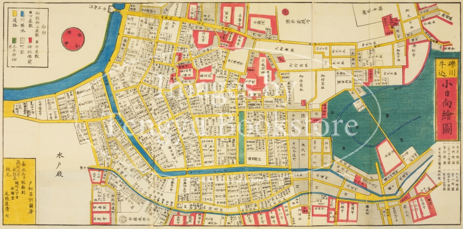 中でも江戸の書店 金鱗堂(尾張屋清七)によって出版された尾張屋版は代表的な江戸切絵図としてもっとも有名なもの。嘉永2年(1849年)に刊行を開始して以来、明治3年(1870年)まで改正と出版を続けた尾張屋版 江戸切絵図は、地図としての用途だけでなく、江戸土産としても喜ばれ、当時高い人気を博しました。