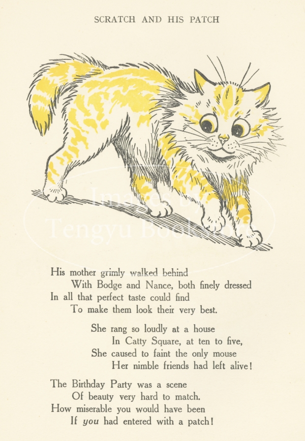 19世紀末~20世紀初期イギリスのイラストレーター、ルイス・ウェイン(1860-1936)の作品集中の1ページ。本書は、猫の画家として当時一世を風靡したルイス・ウェインによる短い児童向け絵物語を多数収録したもの。