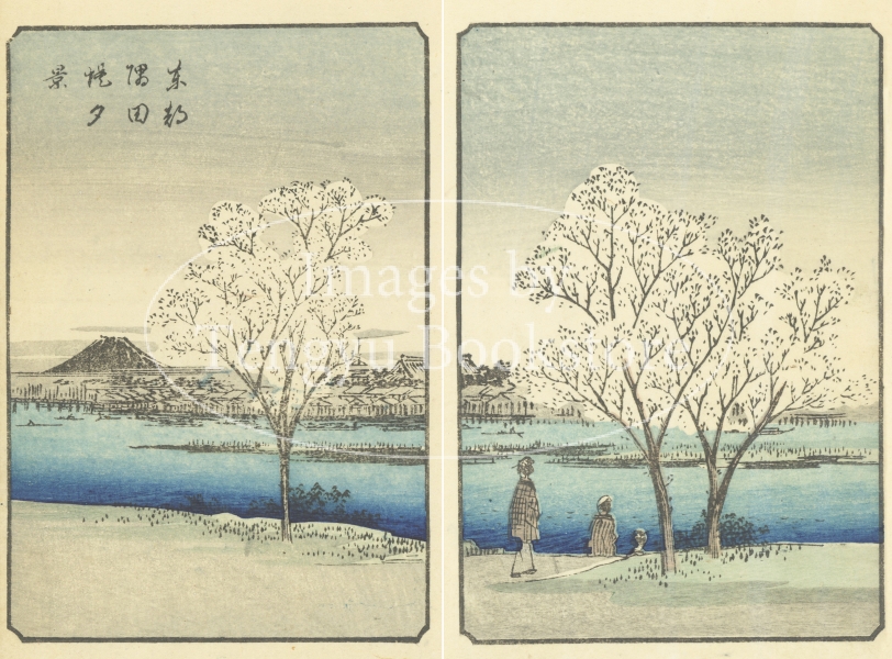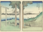 江戸時代後期の人気浮世絵師 歌川広重(1797-1858)の画集「冨士見百図」中の1枚。様々な土地から見える富士山の姿をありのままに写生した本書は、風景浮世絵の大家である広重の本領が発揮された広重晩年の名品です。