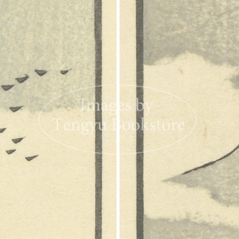 本来は2枚に分けて描かれた作品であるため、色味や図案の整合に若干の不統一があることをご了承ください。