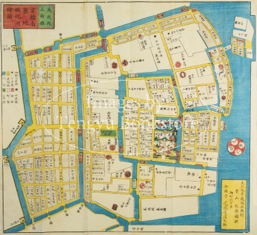 中でも江戸の書店 金鱗堂(尾張屋清七)によって出版された尾張屋版は代表的な江戸切絵図としてもっとも有名なもの。嘉永2年(1849年)に刊行を開始して以来、明治3年(1870年)まで改正と出版を続けた尾張屋版 江戸切絵図は、地図としての用途だけでなく、江戸土産としても喜ばれ、当時高い人気を博しました。