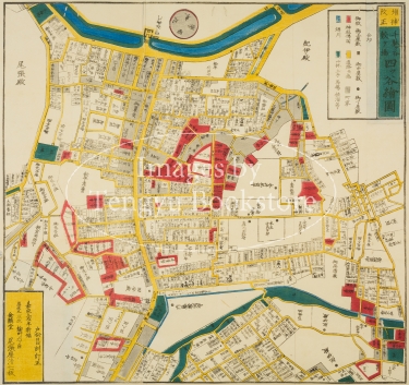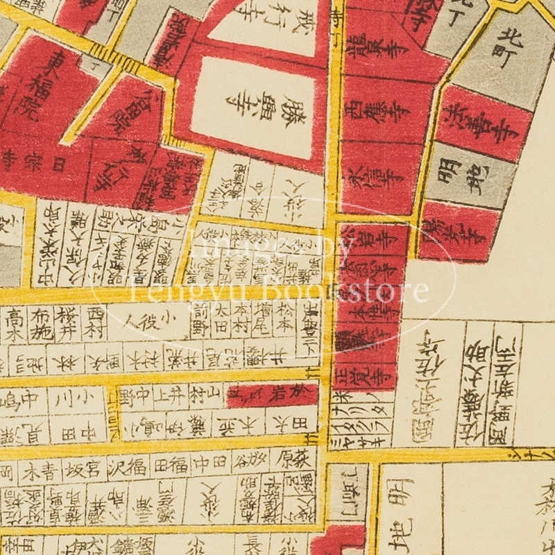 中でも江戸の書店 金鱗堂(尾張屋清七)によって出版された尾張屋版は代表的な江戸切絵図としてもっとも有名なもの。嘉永2年(1849年)に刊行を開始して以来、明治3年(1870年)まで改正と出版を続けた尾張屋版 江戸切絵図は、地図としての用途だけでなく、江戸土産としても喜ばれ、当時高い人気を博しました。