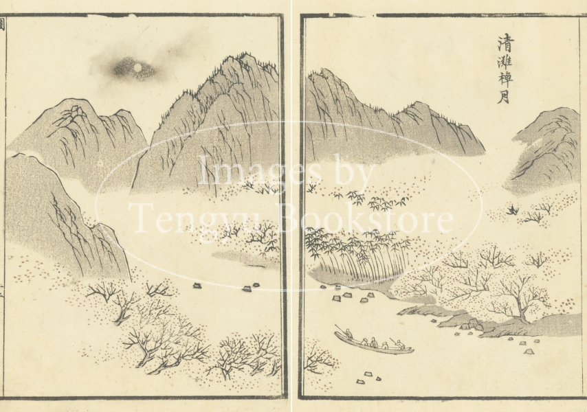 江戸時代後期の朱子学者 斉藤拙堂(1797-1865)の紀行書「月瀬記勝」の挿絵(明治刷)。斎藤拙堂の詩文を中心に様々な著名文人たちの詩を集めた本書は、奈良の月ヶ瀬を梅の名所として世に広く知らしめた江戸紀行文学の名作です。