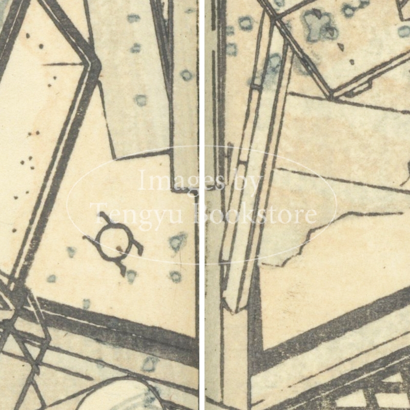 本来は2枚に分けて描かれた作品であるため、色味や図案の整合に若干の不統一があることをご了承ください。