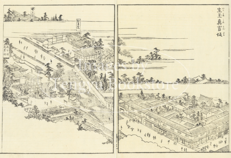 現在の大阪北部近辺にあたる摂津国を紹介した本書は、当時、数多くの名所図会を編纂した京都の文人 秋里籬島(あきさと りとう)によるもの。