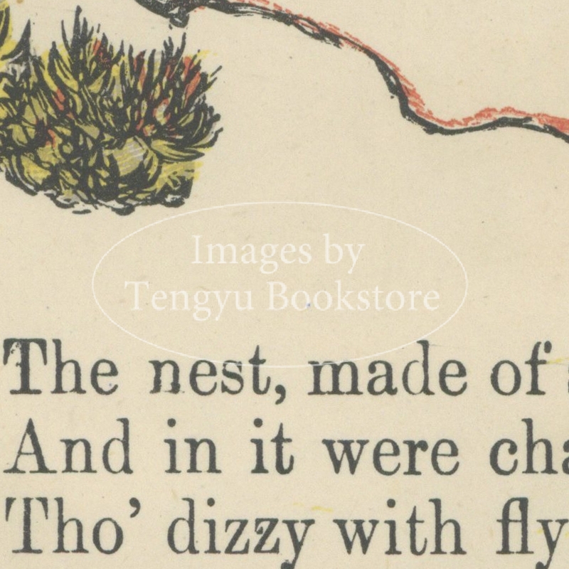 19世紀末イギリスの絵本画家ウォルター・クレイン(1845-1915)の初期の絵本「おしゃべりジャック」の挿絵。おしゃべりが過ぎる子供ジャックが、カササギにさらわれておしゃべりを反省するお話です。