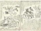 江戸時代後期の浮世絵師・戯作者 歌川貞秀(1807-1878)による草双紙「雲雀山蓮糸織(ひばりやまはちすのいとおり)」の1ページ。奈良の当麻寺に伝わる「当麻曼荼羅」を一晩で織ったとされる中将姫伝説を題材にしたもの。
