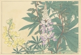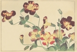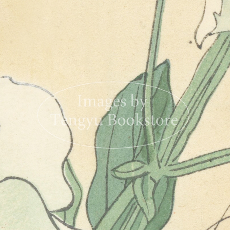 明治大正期の染色図案家 谷上広南(1879‐1928)による木版画集「西洋草花図譜」の1図。当時輸入された海外の草花をおよそ100点取り上げ、色鮮やかな木版画で描いた本作は、日本製のボタニカルアートとして人気の高い作品集です。