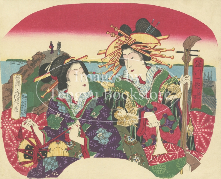 幕末から明治にかけての浮世絵師 歌川房種(生没年不詳)による、深川の芸者を描いた団扇絵。